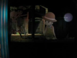 映画冒頭ピョン吉のウサギ小屋にいる鈴木周 外からのぞく小山夏紀←友達
