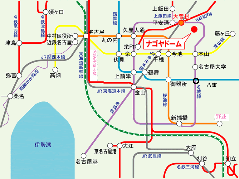 名古屋市営本線→名鉄名古屋本線 野波→野並 名古屋港に行くのは名城線→名港線です。