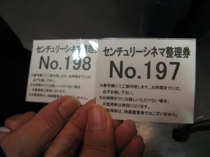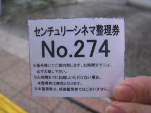 この時間で整理券番号274番、シアターの定員が160人ぐらいだったと思うので2回目の公演です。整理券を配るときに一回目の立ち見ならできますよといっていましたがさすがにそれはなと思いましたね。2回目の人は朝8時から入場で一回目の人の入場はもう始まっていました。