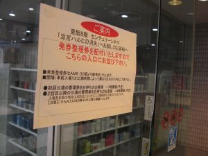 外に出て整列の注意書きを写真に納めました。やはり外で係員の方が整理券を配るのが賢いですね。
