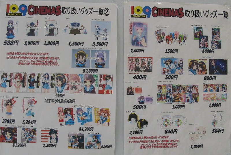 109シネマズは、前回の「なのは」の教訓かサーバーのメンテをしたりいろいろされているようでしたので好印象でした。まぁナノハみたいに1日で3回見るとかする人がいない?ため予約も比較的楽なのでしょう。なのはは3回見るともらえるリピーター特典も異常な値段(53万2000円)が付いていましたが、ハルヒの場合2回目を特典のお引渡しは2/27(土)以降としているため初日で大混乱はかなと思っております。