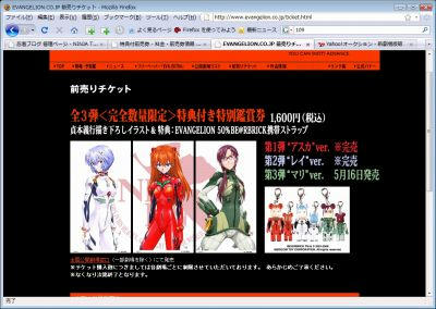 エヴァンゲリオン新劇場版破前売り券マリ買いに映画館に行ったのですが、伏見ミリオン座、到着9時50分、すでに売り切れ。名古屋駅109シネマズ10時20分到着すでに売り切れ。どんだけ人気...