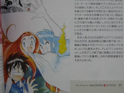 「その人気ぶりから当然テレビアニメ化もされたのだが、放送時間は日曜の朝であった…横島の煩悩ネタがファミリーと子供にウケるか、という心配をよそに、テレビアニメは大ヒット。しかもアニメ終了後に映画化されるほど根強いファンを獲得し、8年の長期連載を支える力となった。」