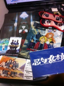 ミッドランドスクエアシネマ名古屋では今日けいおんのアイマスク付き前売り券の発売日ということで、映画館に着くと150人ぐらいが列んでいました。私は特に欲しくなかったのでハガレン列に並んだのですが、チケットも購入終えてみてみるとまだ前売りが残っているようだったので、買ってしまいました。一人10枚購入できるだけあって、自分がもらった整理券番号が1252番係員の持ってる残り札からすると1500枚ぐらいはあったのかもしれません。アイマスクは、あずにゃんと唯でした。映画始まって開場時いただいたのがハガレン11.5巻これはワンピース的な商法ですが、自分的にはパンフレットよりこっちのほうが良いシロモノでした。そしてカバー裏のMBS的なのりがよかったですね。スクエニだけじゃできませんよあのネタw