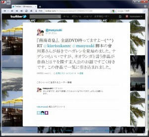 これは、會川昇さんを絶賛されてる?と思い脚本の會川昇さんが好きでハガレンを見始めました。ナデシコもいいですが、ネオランガと言う作品が自由とは?を探す主人公のお話ですごく好きです。この作品で一気に引き込まれました。と返信したら、なんと ゆうきまさみ先生から『南海奇皇』、全話DVD持ってますよー(^^) とご返信が、すぐ2度寝しようと考えていたのに一気に目が覚めました。それも全話持っているという書き方からCDアルバムサイズの時のを持っているような書き方これはすごい!WOWOWアニメ黄金期過ごしてきた私にとってこの返信は嬉しすぎてやばかったですね。パトレイバー大好き人間からするとゆうき先生にはこれで2度目のツイートいただけて嬉しかったです。前回は21巻買ったときでしたかね。前回はRTか。そしてなんと會川昇さんにRTされ、嬉しいのなんのです。朝から本当にすごかった。まぁこんな時間に起きていたのでゆうきまさみ先生が神のみぞ知るセカイはすごかった。と発言されていたのに若木民喜先生がお返事されていたのも見ていてよかったです。漫画家の先生もサブ垢でいろいろな先生をフォローして情報収集されているのかな?