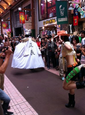 今日は世界コスプレサミット2011が錦と大須にて開催されていましが、今日は日中熱くて大変でした。コスプレしている人はもっと大変なのだろうなと思いながらも見てきました。今年から公式参加者と非公式参加者と分けられるようになったため非公式側はとても人が少ないような感じでした。まぁパレードに参加しない人でも大須を散策している人多かった印象です。パレードに参加している人はやはりボーカロイド、マクロスF、タイバニ、銀魂、ワンピース、ブリーチ、イナイレ、平成ライダーが多い感じでしたが、今年はなぜかゲゲゲの鬼太郎も4組ぐらいいましたかね。あとジブリ系も多かったです。魔女子さんはきっと6人はいたかな。ムスカ大佐にナウシカも居ました。