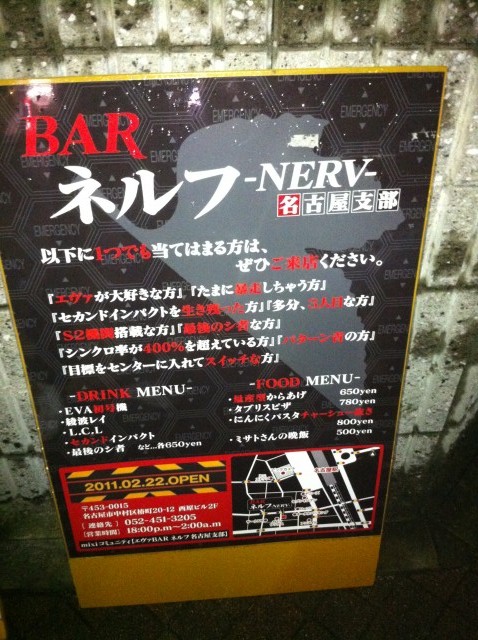 愛知名古屋駅西口側にあるBARネルフ-NERV-名古屋支部に行ってきました。