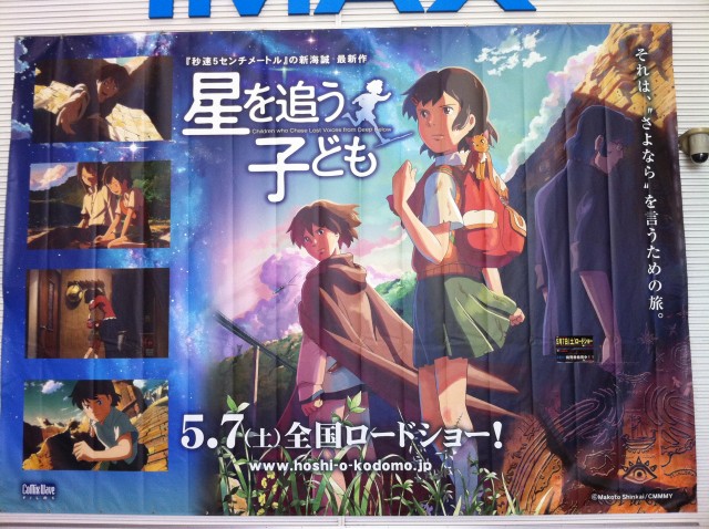 映画館は入り口に壁を覆う大きさで新海 誠 最新作『星を追う子ども』の広告があったのでびっくり、でかかった。でもそこを通る人がこれジブリ?て言っていたので知られてるわけないよなと納得していました。ということで前売り券を大量購入。
