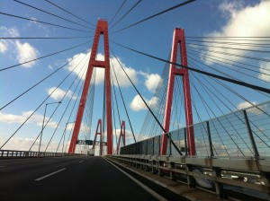 あとは適当に道中を、伊勢湾岸自動車道の風景。なんだか今日は絶好のドライブ日和でしたね。橋のケーブルが集中線のようでした。