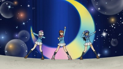 キャリーが浅草に来たときの軍人が読んでいた新聞がJAPANESE"MOE"という記事が書かれているのですが、よく見ると可憐Girl'sのように見えます。それもOver The Futureの時の服っぽいです。