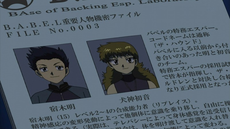 少年の名は宿木明。そして少女の名は犬神初音。二人とも、特殊な超能力を持つバベルの特務エスパー候補生である。