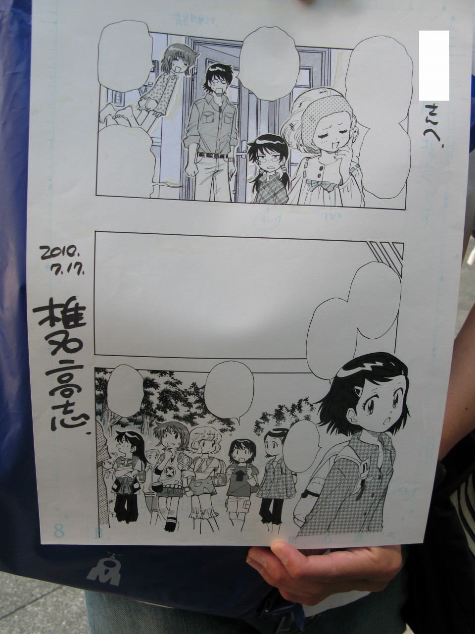 2010年7月17日椎名高志先生サイン会 アニメイト池袋にて行われたときにイベントには参加できなくても一目生原稿を見たいという思いで東京まで行ったのですよね。あれからもう9ヶ月か早いな。今年もまたサイン会行っていただけるとファンとしては嬉しいですが今度はチャリティ兼ねてとかでもいいですよね。当選した方は募金箱が置いてあってそこに入れるという形とか・・・あって欲しいな。