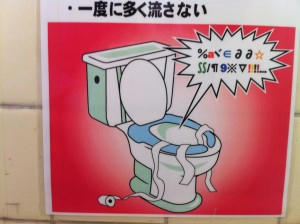 あとは大須のPCショップでのトイレで見つけたイラスト。一度に多く流さないって、出るものを制御できる人はいるのかなwそして詰まったときの反応を表しているであろう文字が面白かったので写真撮ってしまいました。