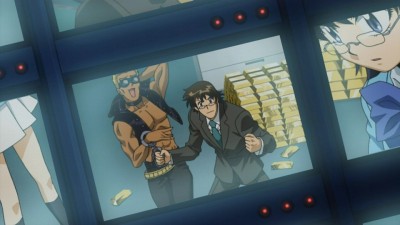 かねぐら銀行です。たしか3話のときも銀行強盗に入られています。