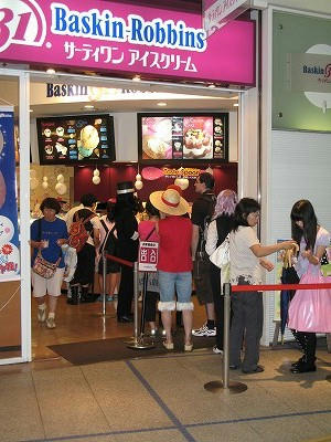 飲食店も入っていいのですごい光景です。31に並ぶルフィー。