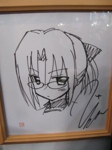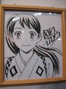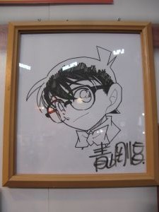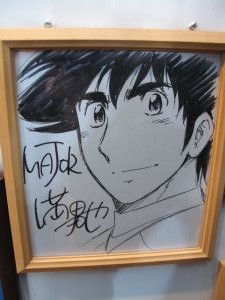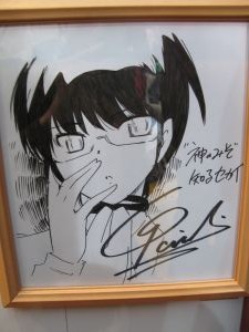 横に今回の少年サンデーエリート統一試験のサイン色紙が一緒に飾られていました。コナンと結界師の雪村時音とハヤテのごとくの春風千桜とMAJORの茂野吾郎と神のみぞ知るセカイの桂木桂馬でしたね。