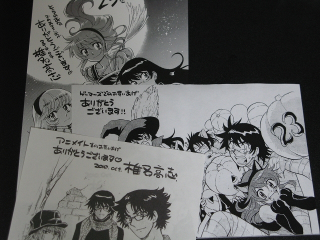 おまけ:サンデー本誌2010年34号サプリメントでOVAと単行本の売れ行きがよかった乳首トーンS-931をキャラのちくびに貼るという乳首券が付けられたのですが。OVAが発売週に予想を上回る売り上げで品切れ続出を記録しましたのでめでたくオマケに掲載となりました。(売り切れ状態とかツイッターではつぶやいていたと思いますが記事で書いたのは椎名高志先生サイン会 アニメイト池袋の時に少しだけかな?)