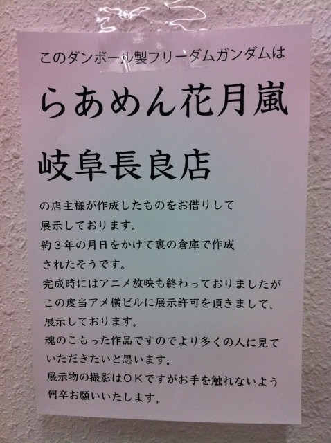 この前書いた「大須ダンボール製のフリーダムガンダム」にコメントをいただいたので他の用事のついでに行ってきました。