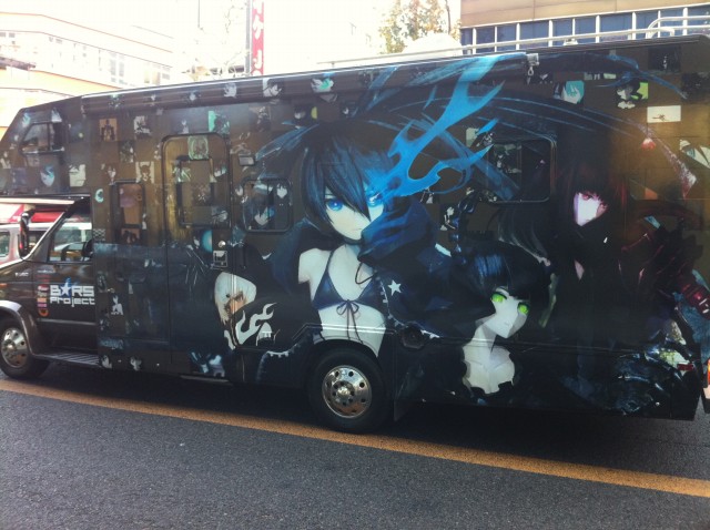 ブラック★ロックシューターのB★RSキャンピングカーが大須を巡回していました。コレを調べてようやくゲーマーズ前でやっていたコスプレの人のクリアファイル配布の意味がわかりました。こうやっていろいろなところを回っているのですね。