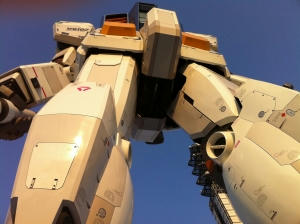もうこの時点で夕暮れ。まだ平日ということもあってか人はまばらでしたが、ガンダムが蒸気を出しながら首を振るショー的なものが見れてよかったです。ガンダムの足元を歩いて触ることができるイベントも行われていました。下からガンダム覗くと、あそこの部分が出っ張っているのですね。新たな発見でした。引いて写真撮るといつもALSOKの警備員にしか見えませんw 大須のダンボールフリーダムガンダムも同じぐらい驚きましたけどね。